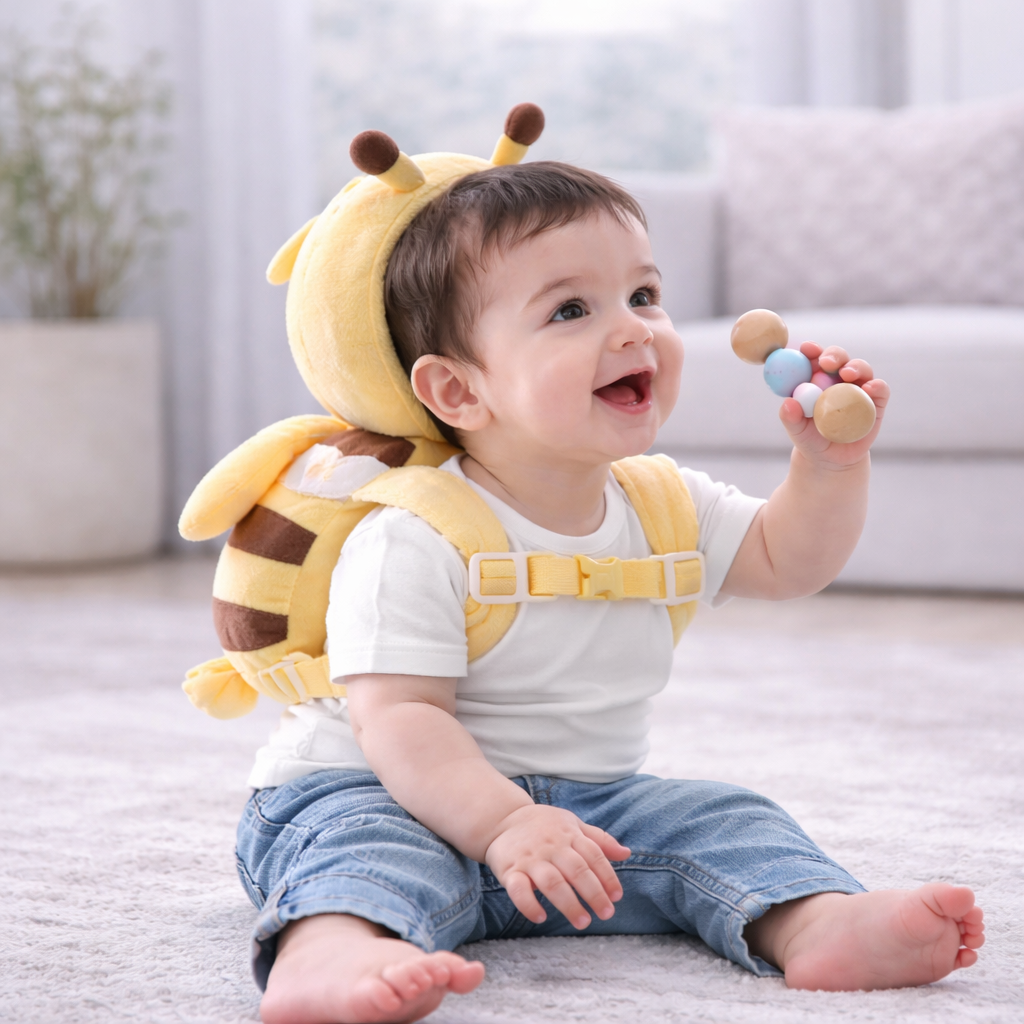 The BloomFit™ Baby Head Protector is designed to help reduce impact from minor, everyday falls, but it does not guarantee injury prevention and does not replace adult supervision.